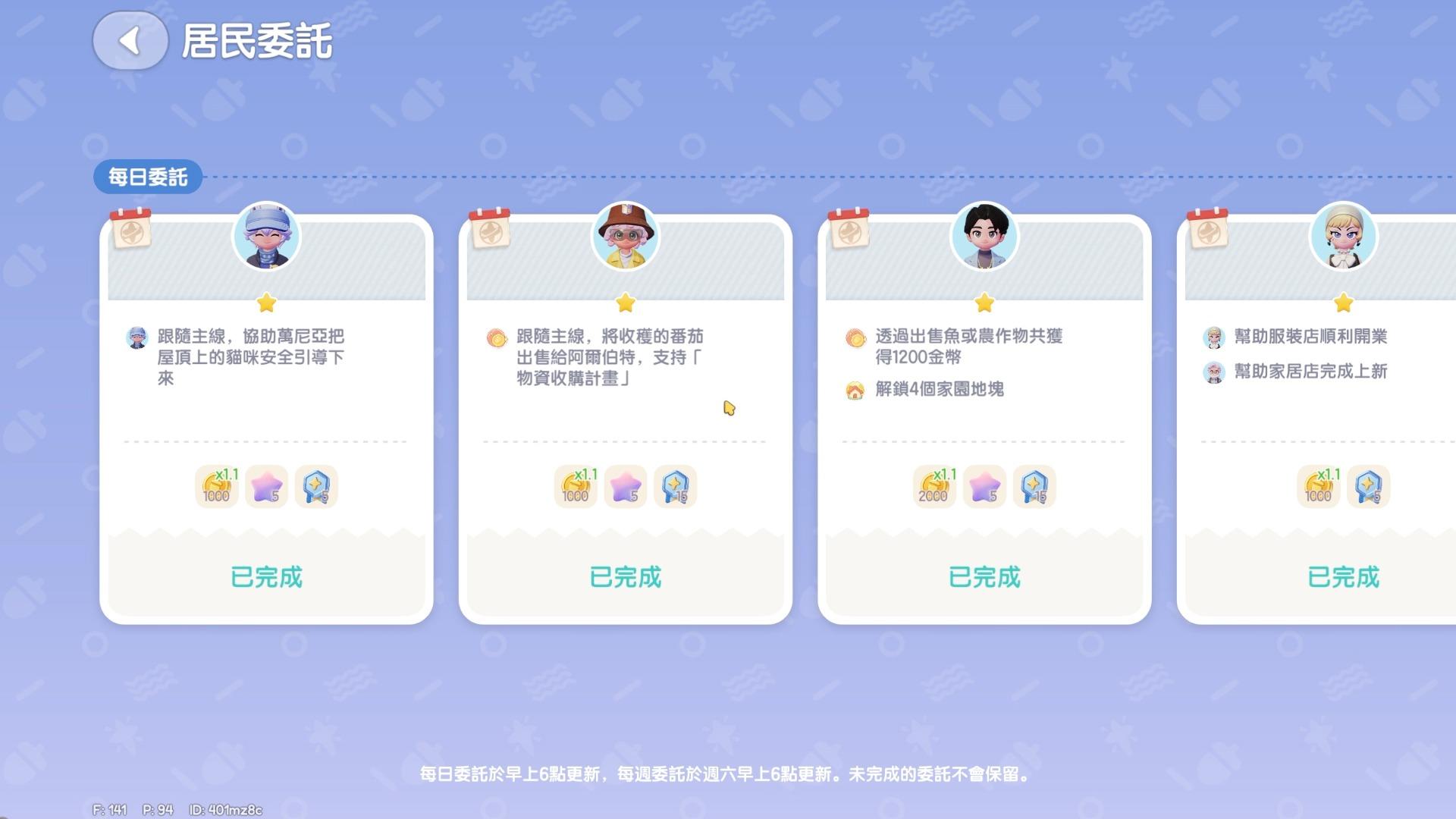 每日任務一共會有五個,每天都要做完