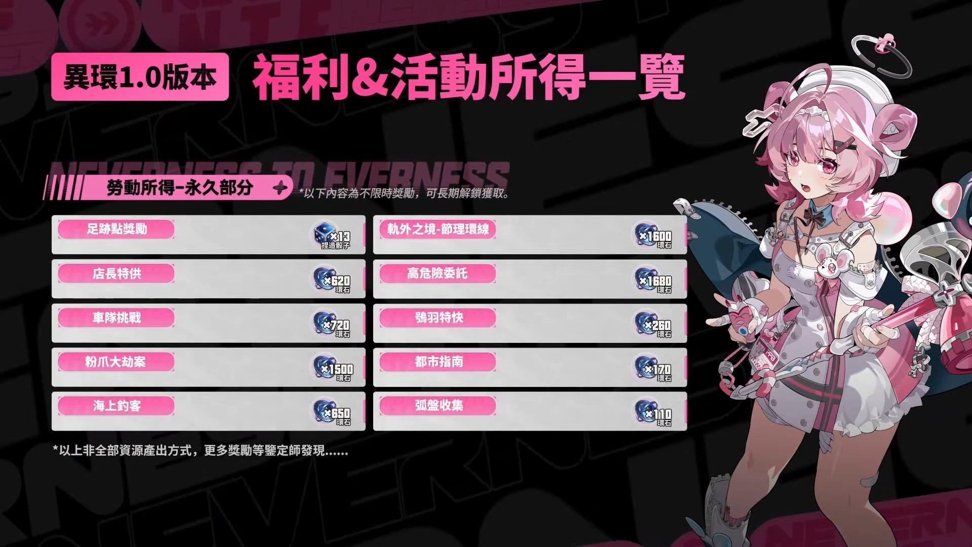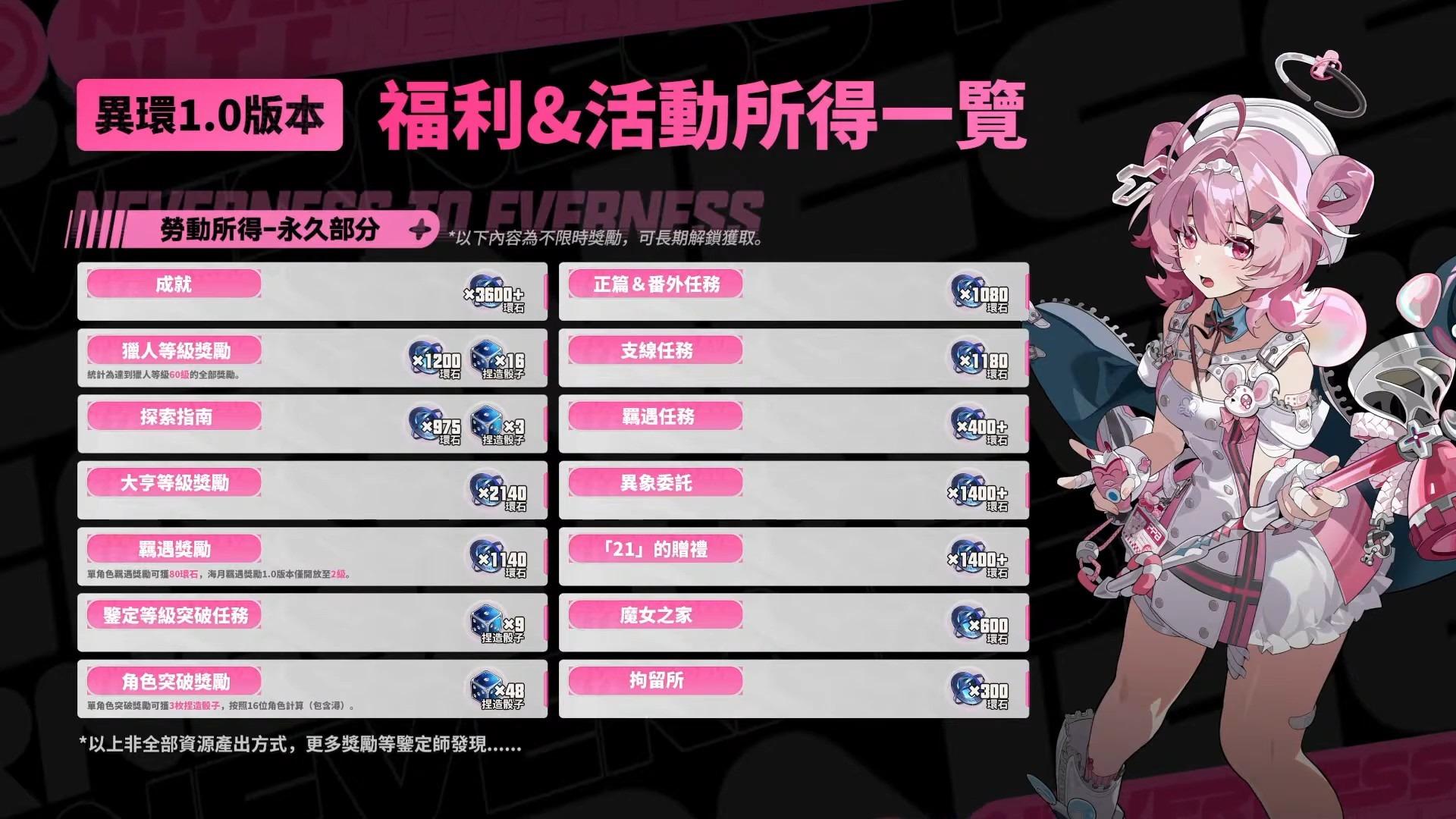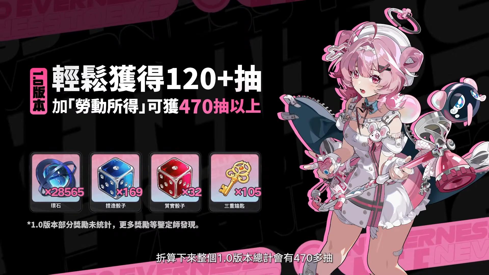 1.0版本可以獲得120以上抽數,並在遊戲中遊玩獲得470以上抽數。